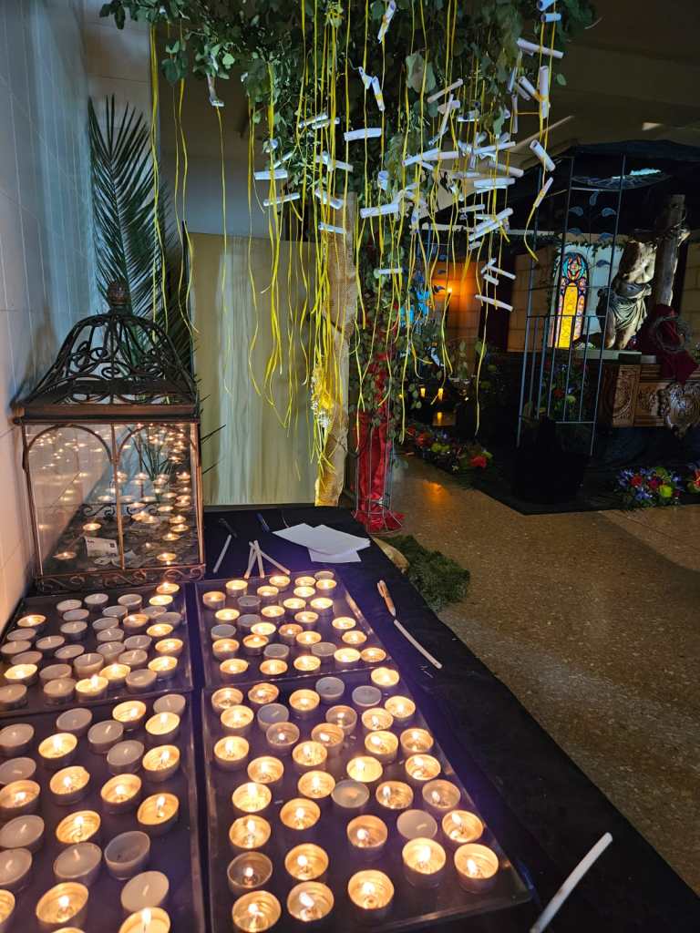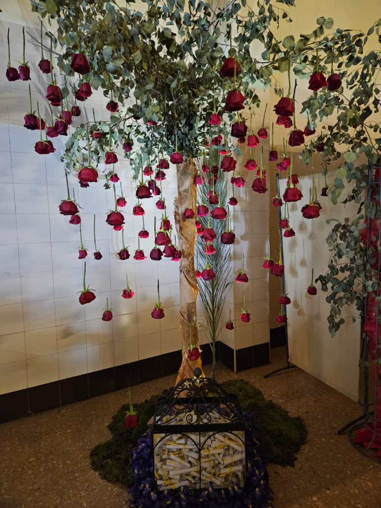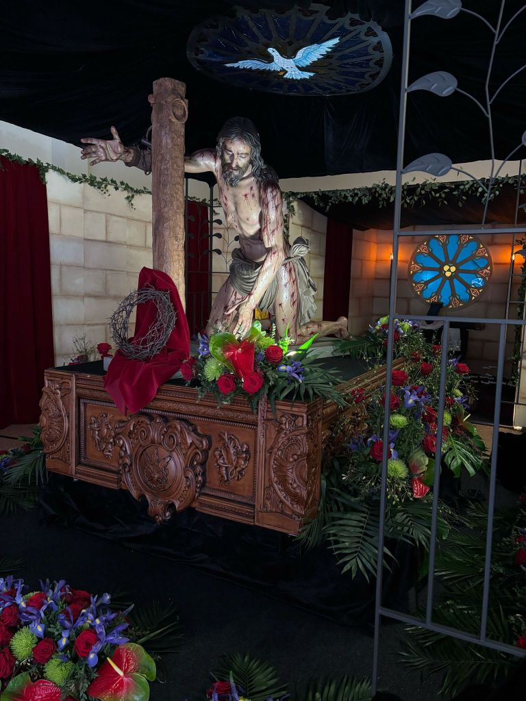 Espectacular lo que realizaron nuestros cofrades en la casa agraciada, no hay mejor lugar que el Colegio Chiner de Villarroya donde nuestro Cristo después del Traslado de Imágenes permanece toda la Semana Santa hasta el Lunes de Pascua que es trasladado a la Parroquia Nuestra Señora de los Ángeles por todos sus hermanos.